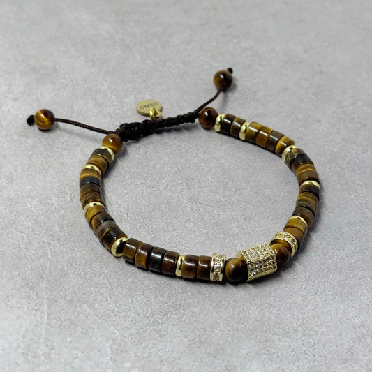 Tiger Eye Heishi Pavé Shamballa Bracelet